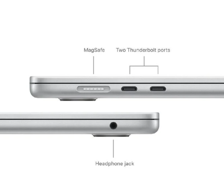 - GET CONNECTED - MacBook Air features two Thunderbolt ports, a headphone jack, Wi-Fi 6E, Bluetooth® 5.3 and a MagSafe charging port. And connect up to two external displays with the laptop lid closed.