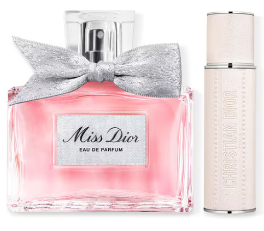 - Limited-edition travel spray, 10 ml. The iridescent pink travel spray harmonizes with the Miss Dior color palette and features a star stamped Christian Dior Paris band for a couture finishing touch. Bring Miss Dior Eau de Parfum with you wherever you go, using this prefilled travel spray that can be refilled from the 100 ml eau de parfum bottle.
