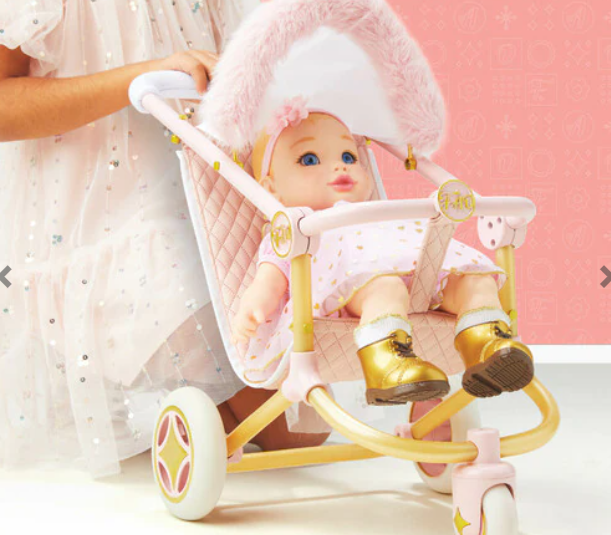 Step out in style with the F.A.O. Schwarz® Baby 3-Wheel Doll Stroller, designed to bring high-fashion to your child's playtime. This chic stroller is perfect for any 35cm baby doll, featuring a luxurious faux fur lining and a realistic retractable sunshade that protects their doll from the elements. Built with quality construction and sturdy wheels, it ensures a smooth and durable ride through any playtime adventure. The modern aesthetic updates a classic doll accessory, making it a stylish addition to any pretend nursery. Ideal for children aged 3 and up, this doll stroller encourages active play and nurturing skills, all while providing a glamorous twist that young caregivers will adore.