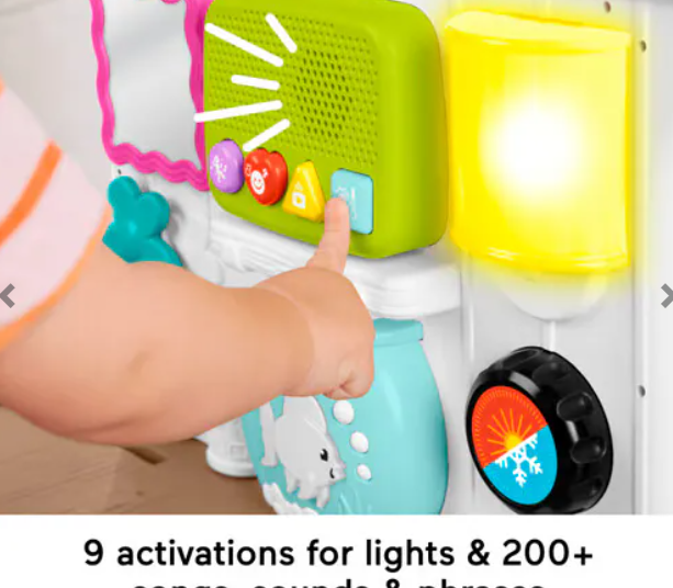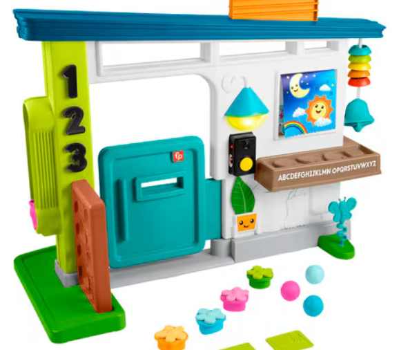 The Laugh & Learn Ultimate Playhouse playset from Fisher-Price is packed with engaging activities, lights, songs and sounds for baby and toddler homeowners to discover. The house exterior features a doorbell, porchlight, shape-sorter window box, drop-through rain spout and more. The crawl-through door leads to baby's living area with desk, light-up fishbowl, flower spinner, thermostat dial, and a pretend radio with 4 buttons that activate fun music and sounds. And with Smart Stages technology, the learning grows along with your baby with 200+ fresh songs, sounds and phrases!