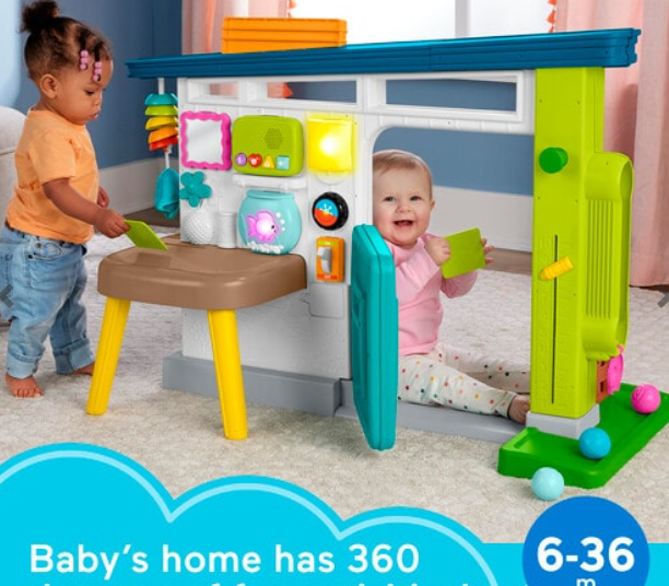 - Introduces learning, effecttronic home playset and crawl-around activity center with 360 degrees of interactive play