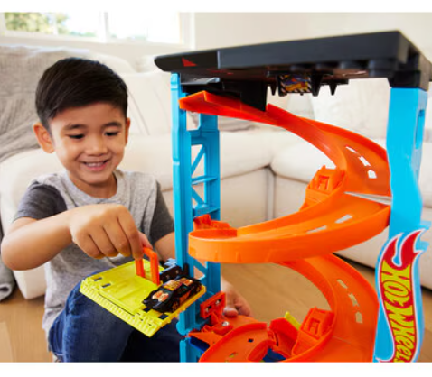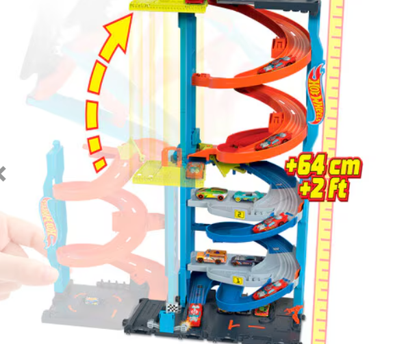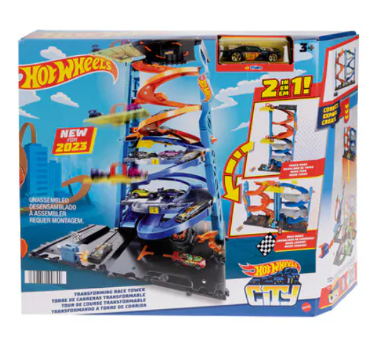 Features: The Hot Wheels City Transforming Race Tower converts from high-level single-lane racing to a two-lane competitive speedway with innovative twists kids and adults love. The impressive dual-side elevator works for both race and single modes and automatically converts during the tower's transformation. In race-mode, place 2 1:64 scale cars in the elevator, then lift it to the top, release the fair-start gate and watch the cars race. One Hot Wheels® car is included. Additional cars sold separately. The tower is 26-inches tall in single-lane mode, making for high-speed racing full of twists and turns. Connect it to other Hot Wheels® sets to continue the adventures. (Additional sets sold separately.) Makes a great gift for kids 3 years old and up who love racing their Hot Wheels® cars.
