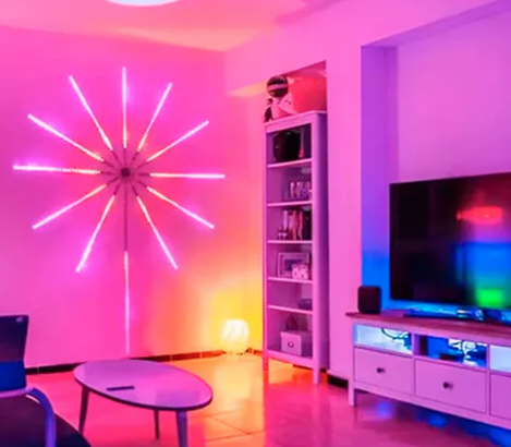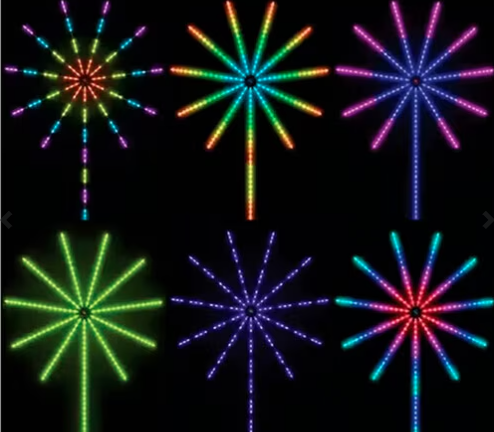Transform your space with the dazzling Fireworks LED Light! Featuring 11 RGB light strips that mimic fireworks in full bloom, it offers 16 million colours, dynamic modes, and music sync for a vibrant, immersive experience. Easily controlled via app or the included remote, it's perfect for parties, holidays, and everyday decor.