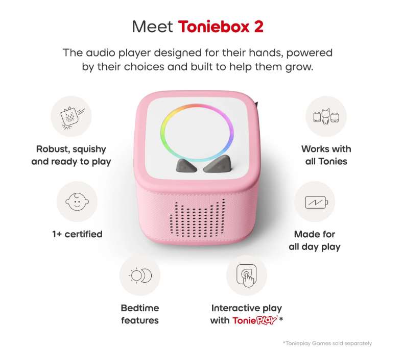 With two ways to play: kids can dive into favorite tales and tunes with an ever-growing crew of Tonie characters, or add Tonieplay to unlock screen-free interactive games, quizzes, and challenges where they take the lead.There’s so many Tonies and Tonieplay games to choose from, they’ll be engaged and entertained from breakfast ‘till bedtime.