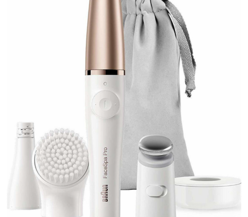 The Braun FaceSpa Pro is the world's 1st 3-in-1 facial epilation, cleansing & skin toning device. Gently remove facial hair with the precise epilator head that has 10x micro-openings that move over 200 times per minute, making easy work of unwanted hair. Clear out your skin and stop ingrown hairs/acne forming with the facial brush that can remove 6x more impurities than a manual scrub. Japanese technology brings you the MicroVibration head that delivers 25 pulsations a second to apply your face/eye cream without putting any stress on skin - keeping your skin toned, clear and revitalised.