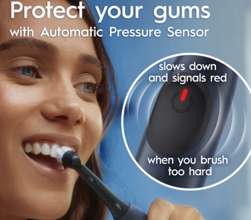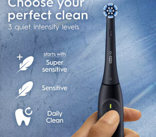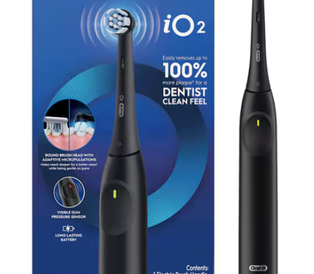 The iO2 electric toothbrush combines gentle micro-vibrations with a unique dentist-inspired round brush head for a purifying feel of a professional clean.