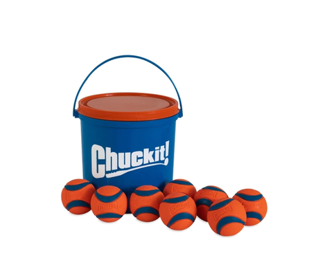 Made specifically for fetch-loving canines, this bucket comes with 8 medium sized Chuckit! Ultra Balls® and features drainage holes to make cleaning and sanitizing balls a breeze. Simply place dirty toys inside, fill with water, give the bucket a swoosh, and voila, you've got clean toys ready for fetch. The easy carry handle makes transport easy, so you can Make Fetch Happen® wherever your sense of adventure takes you. Grab your Chuckit! Ball Launcher (sold separately) and your Chuckit! Bucket and take your game of fetch to the next level!