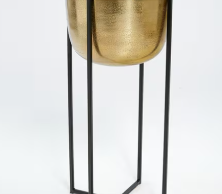 The brass-coloured bowl in this M&Co planter will add a touch of shimmer and shine to your indoor garden space, and the four-legged matte black stand allows it to be positioned securely in any corner of the room. Available in two different sizes.