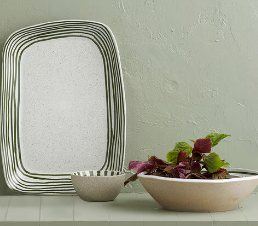 Robert Gordon Mediterranean Striped Platter, 38cm, Green