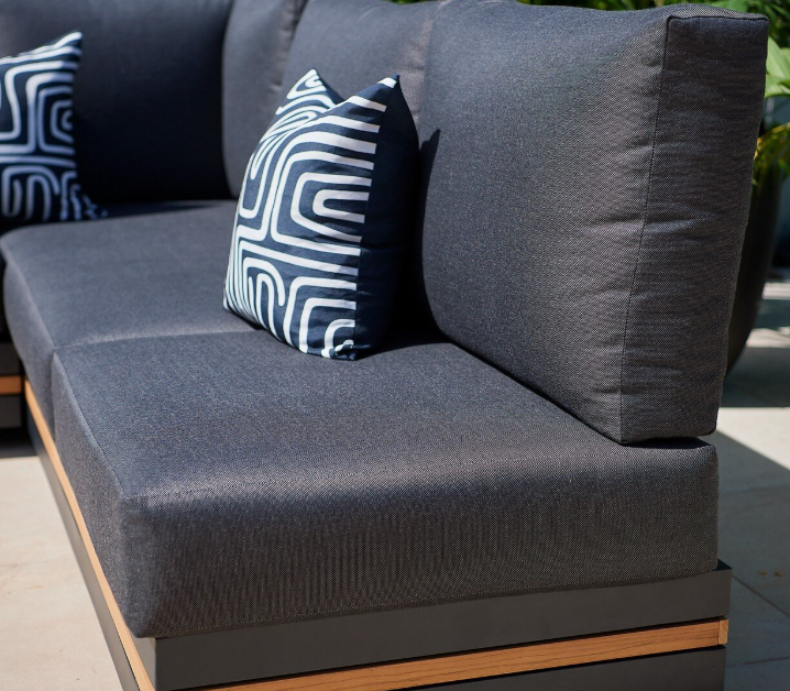 This corner lounge setting invites you to unwind in style. The Cypress Collection features warm teak accents and comfortable cushions, creating a relaxing space. Arrange it as a sunbed or keep it as a lounge — it's up to you. A modern setting that enhances your outdoor living.
