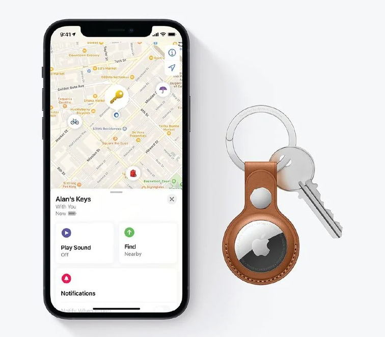 AirTag. Keep track of your keys, wallet, luggage, backpack and more, all in the Find My app. Play a sound on the built-in speaker to help find your AirTag nearby. Or if it's further away, get help from hundreds of millions of Apple devices in the Find My network to track it down. All anonymously, and encrypted for privacy.