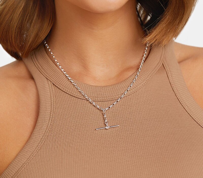 Flawless for an avant-garde touch to your apparel, this chain comes in a belcher style that offers a chic appeal. Centred with a fob T-bar for a sophisticated detail, it is created in sterling silver that provides a sublime shine. An accessory that will enhance your ensemble.