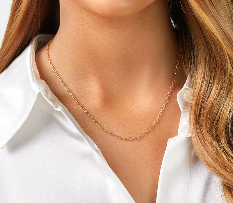 45cm (18”) 2mm-2.5mm Width Hollow Paperclip Chain in 10kt Yellow Gold