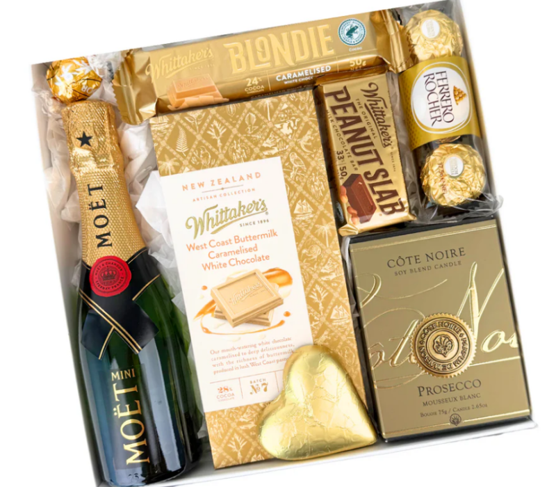 One of Celebration Box's top selling gift boxes! Our Celebrate with Moët is the perfect gift box for any occasion! Celebrate the successes of yourself, friends and/or family with a bottle of champers, delicious Whittaker's Chocolate and to leave a lasting impression - a Cote Noire Prosecco Candle to remind you of the good times every time it is 'lit'!