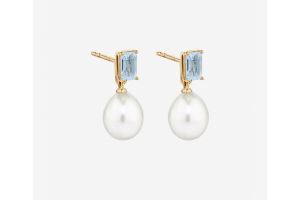 Multi-Wear Aquamarine and Cultured Freshwater Pearl Drop Stud Earrings in 10kt Yellow Gold