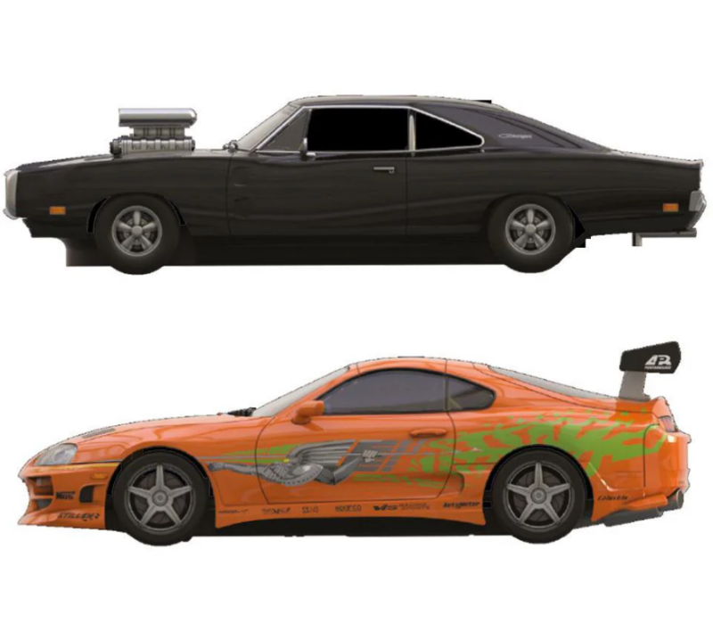 This set brings the high-octane thrills of the blockbuster series into your home. Race head-to-head with Dom Toretto’s iconic Dodge Charger and Brian O’Conner’s legendary Toyota Supra, both meticulously detailed to replicate the originals from the movies.
