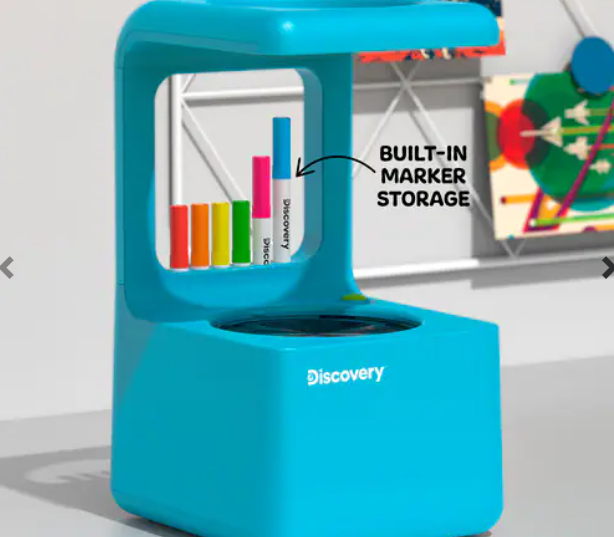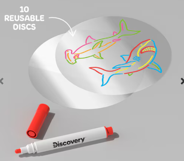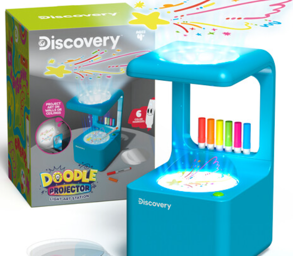 Discover a new dimension of creativity with the Discovery Doodle Projector Light Art Station, perfect for artists of all ages. This innovative device transforms simple doodles into dazzling light displays on any surface. Featuring reusable drawing discs that easily wipe clean, built-in marker storage, and locking tabs to keep everything in place, this lightweight, battery-powered projector is designed for portability and ease. Ideal for parties, classrooms, or adding a unique touch to your personal space, it's a versatile tool for creating unforgettable visual experiences. Unleash your artistic potential and bring your visions to vibrant life with this engaging art station.