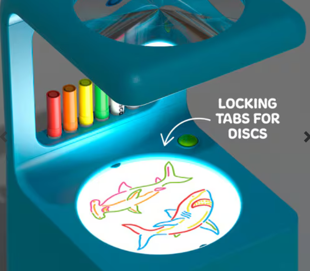 • Comes complete with a projector, six erasable markers, and ten drawing discs