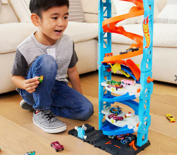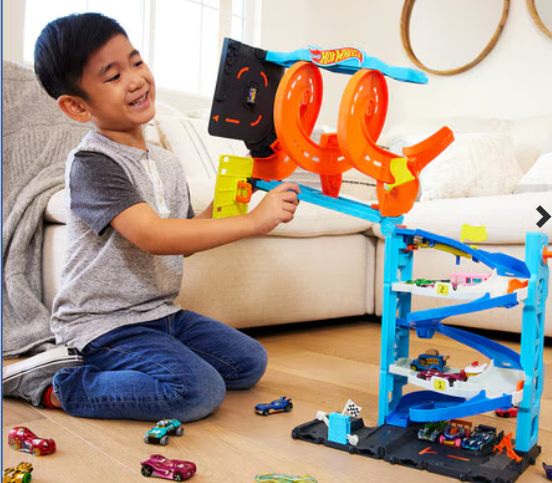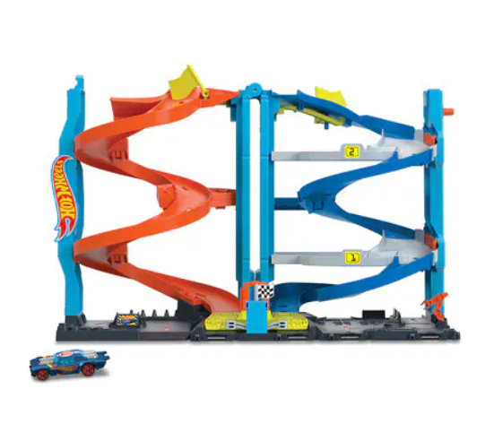 Features: The Hot Wheels City Transforming Race Tower converts from high-level single-lane racing to a two-lane competitive speedway with innovative twists kids and adults love. The impressive dual-side elevator works for both race and single modes and automatically converts during the tower's transformation. In race-mode, place 2 1:64 scale cars in the elevator, then lift it to the top, release the fair-start gate and watch the cars race. One Hot Wheels® car is included. Additional cars sold separately. The tower is 26-inches tall in single-lane mode, making for high-speed racing full of twists and turns. Connect it to other Hot Wheels® sets to continue the adventures. (Additional sets sold separately.) Makes a great gift for kids 3 years old and up who love racing their Hot Wheels® cars.