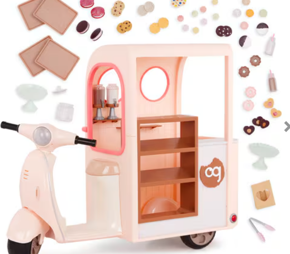 53-pc Cookie Cart Playset: scoot into delicious adventures and serve up fun with the Our Generation Chip Chip Hooray Cookie Scooter playset!