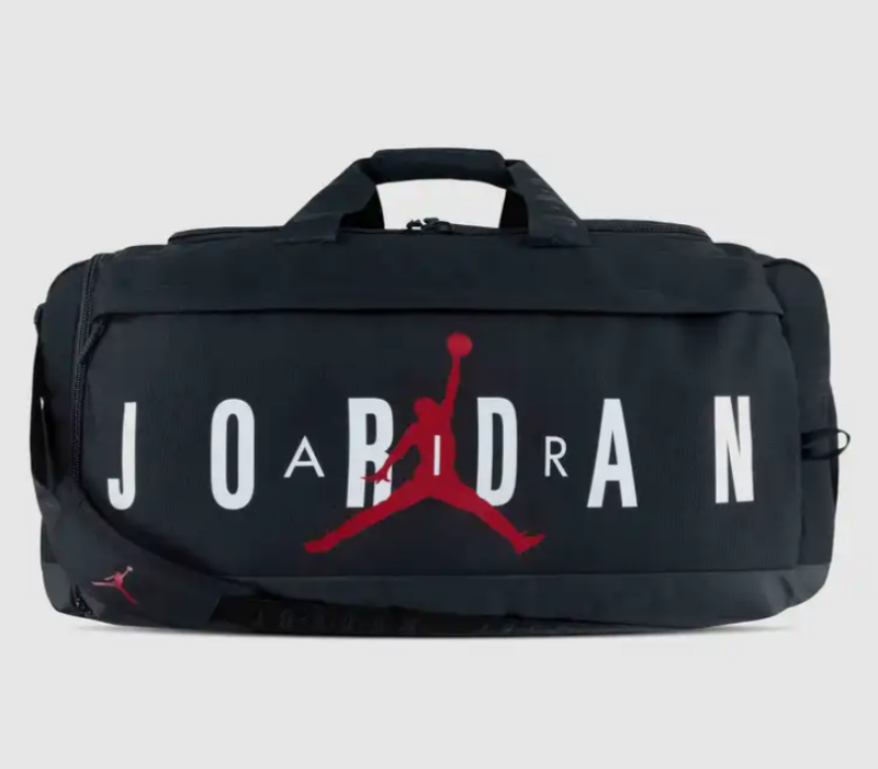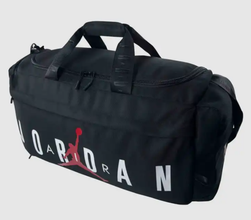 The Jordan Velocity Medium Duffle Bag is your ideal companion for both sports and travel needs. Crafted from durable polyester, this bag ensures your essentials are organized and protected, featuring a main zippered compartment with an inner drop pocket and a vented shoe garage to keep your gear clean and separate. The iconic Jumpman logo adds a touch of style, making it a perfect blend of functionality and fashion.