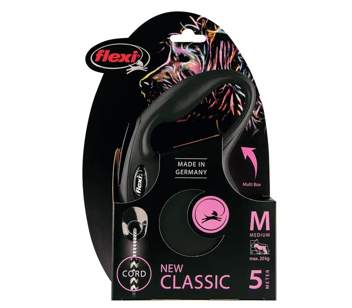 Flexi Classic 5m Black Medium Retractable Cord Dog Leash