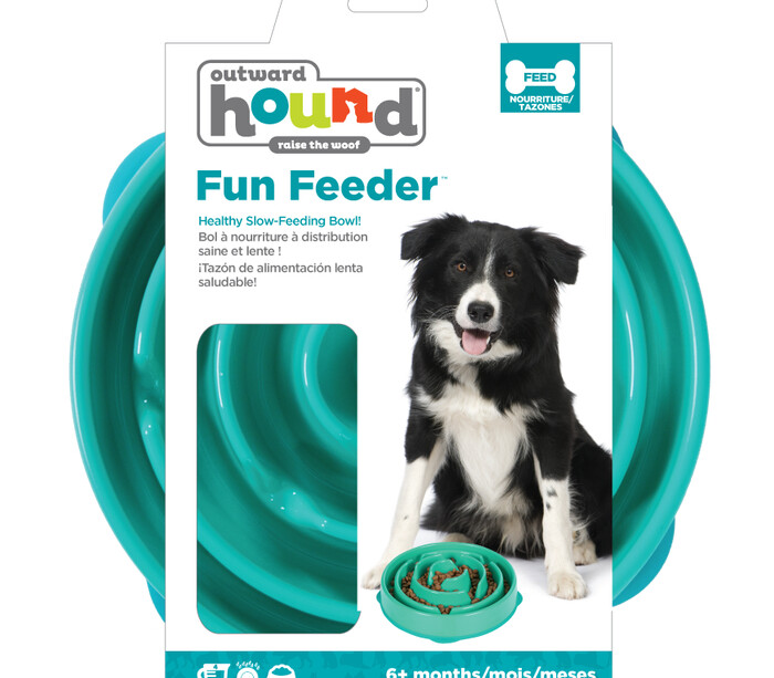Outward Hound Fun Feeder Dog Bowl Drop Teal