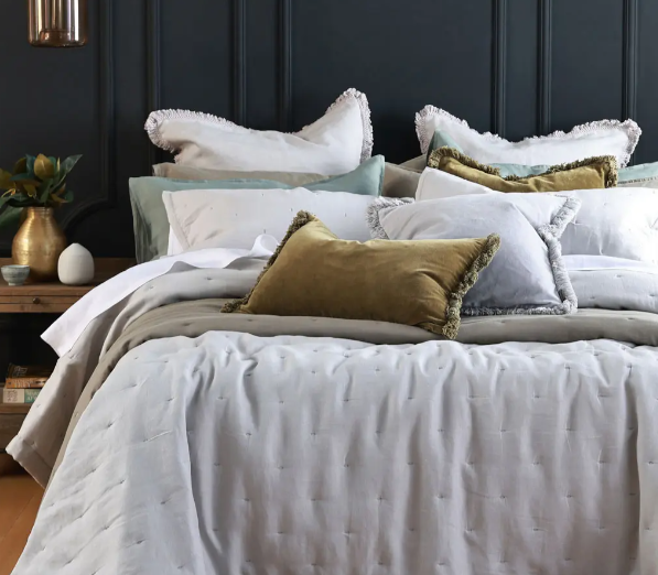 100% Pure Linen Bedspread Set that has been pre-washed for softness, with a white cotton reverse and pintuck embroidery.
