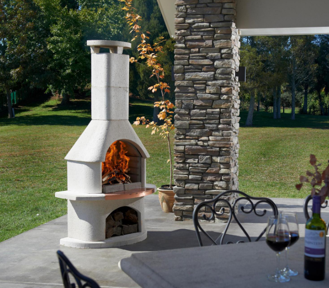 - Multifunctional 3 in 1 fireplace, pizza oven, and BBQ.