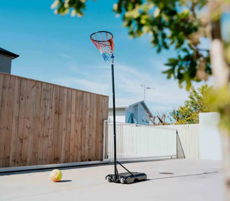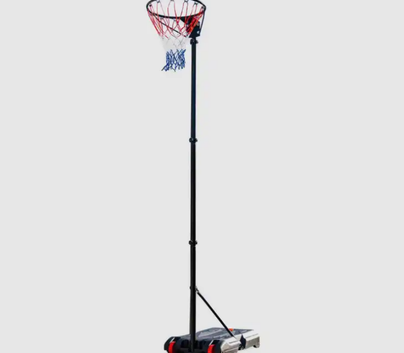 The Silver Fern Weka netball stand is a portable and adjustable netball hoop and stand system. The pole is made out of powder coated steel with a moulded water fillable base. The pole has a adjustable screw on one of the poles, so it can be moved between 2.3 x and 3.05m high. The box dimensions are 75 x 45 x 13cm.
