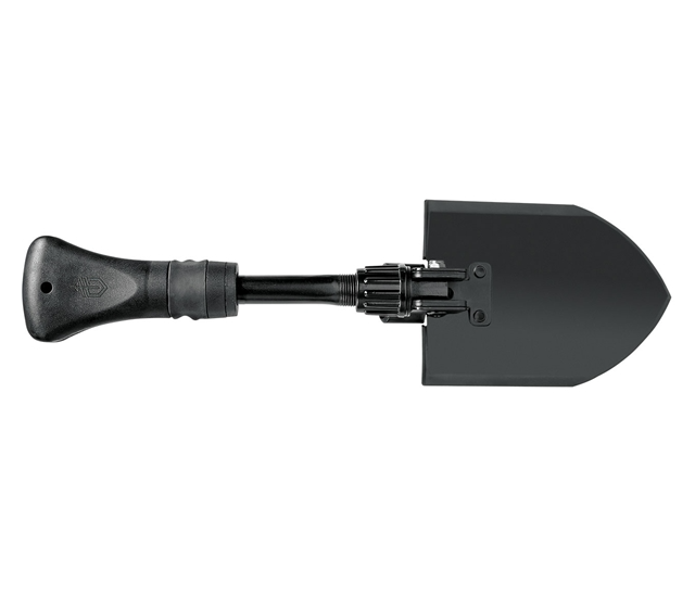 The Gerber Gorge lightweight, foldable shovel is the ideal tool for any backcountry trips. A glass-filled nylon shaft and rubberised handle secure the grip for digging or hammering. Use as a spade or fold back to reveal a hammer for pounding, easily fold away with the push of a button.