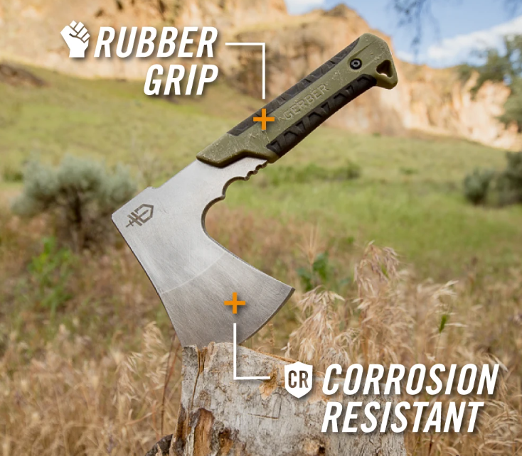 Gerber's Pack Hatchet has full tang construction for added strength, a tall blade grind for optimal sharpness, an ergonomic handle to choke up for control, and a rubber over-mold on the handle for added comfort. For a compact tool, the Pack Hatchet delivers an impressive amount of function.